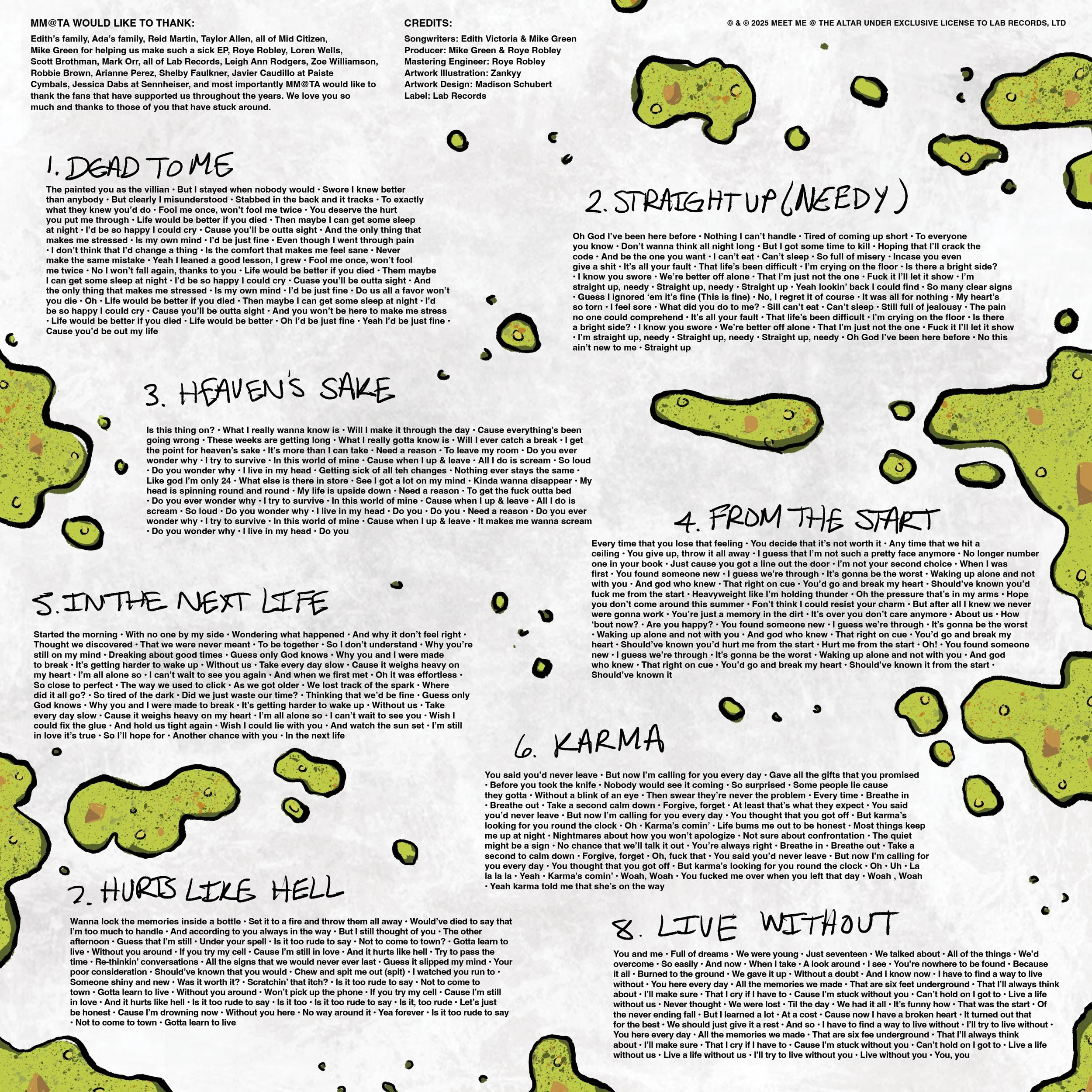 Vinyl Insert Lyrics + Credits Side